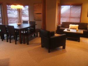 This is about the best ski-in/ski-out property there is in Whistler because you can access both mountains easily. Walk or ski less than a block to the convergence of the Whistler and Blackcomb gondolas in Mountain Square or walk a block along Blackcomb Way to the Daylodge at the base of the Wizard Express Chair. Wave to the slowpokes in your family or group as you pass over the kitchen skylight in Blackcomb’s Excalibur Gondola.
