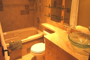 Masterbedroom with king or twin beds, TV/DVD and ensuite bathroom with heated floor