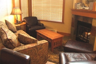 Livingroom with vaulted ceiling, gas fireplace, TV/VCR/DVD/CD Stereo