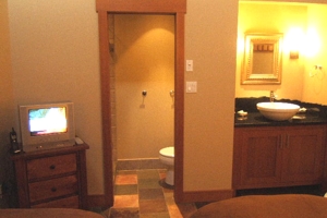Masterbedroom with king or twin beds, TV/DVD and ensuite bathroom with heated floor