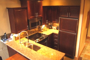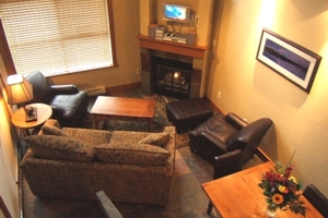 Livingroom with vaulted ceiling, gas fireplace, TV/VCR/DVD/CD Stereo